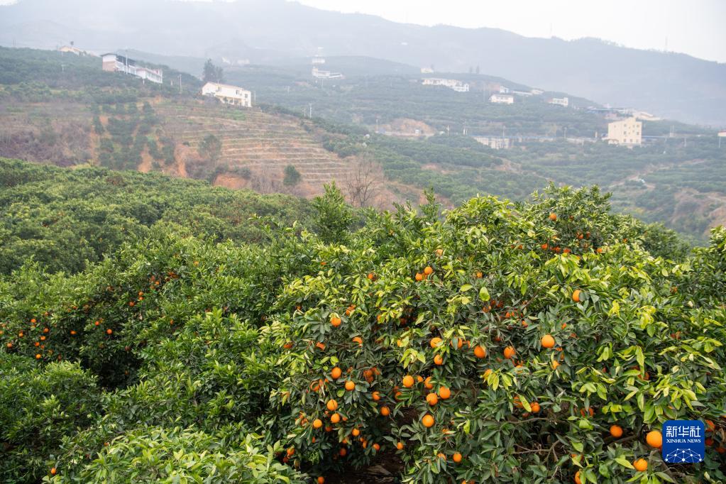 這是2月28日拍攝的位于重慶市奉節縣永樂(lè )鎮大壩村的臍橙種植園。