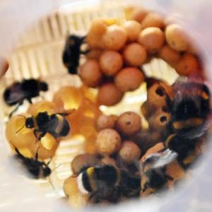 在中農熊蜂繁育基地,工作人員查看培養皿中的熊蜂(3月1日攝)。