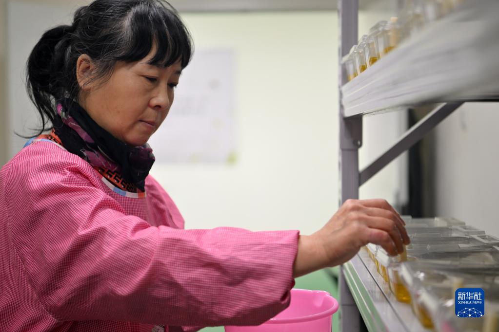 在中農熊蜂繁育基地,工作人員在調制營(yíng)養液(3月1日攝)。