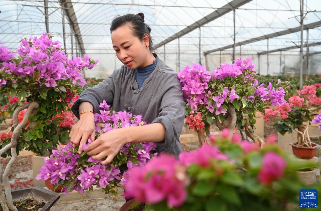 2月28日,在位于漳州高新區的福建大千園林有限公司,員工在修剪三角梅。