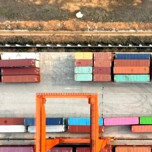 3月2日,“南昌-溫州港-洛杉磯”鐵海聯(lián)運班列(前)準備從南昌國際陸港鐵路口岸二期駛出。