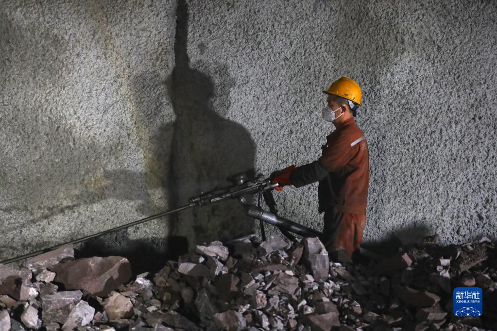 3月1日,在沈白高鐵遼寧段新賓隧道內,中鐵十九局施工人員在隧道內施工。