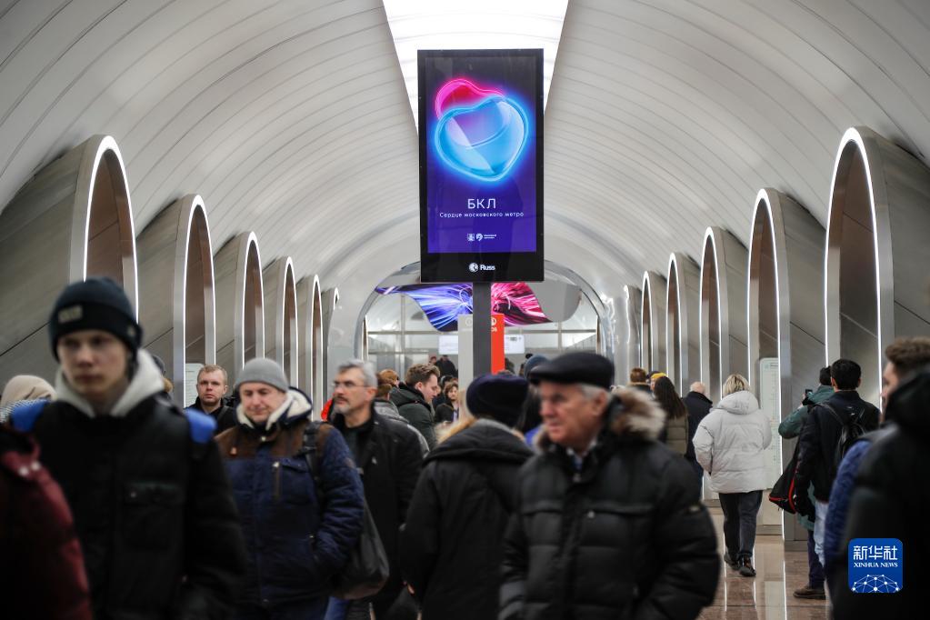 3月1日,在俄羅斯莫斯科,人們走在莫斯科地鐵大環(huán)線(xiàn)的一處地鐵站內。