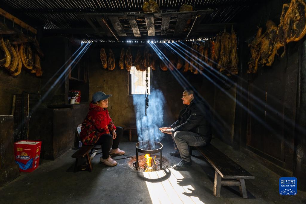 2月14日,鄭望春(右)在村民甘紹芝家中了解她家生產(chǎn)生活中需要解決的問(wèn)題。