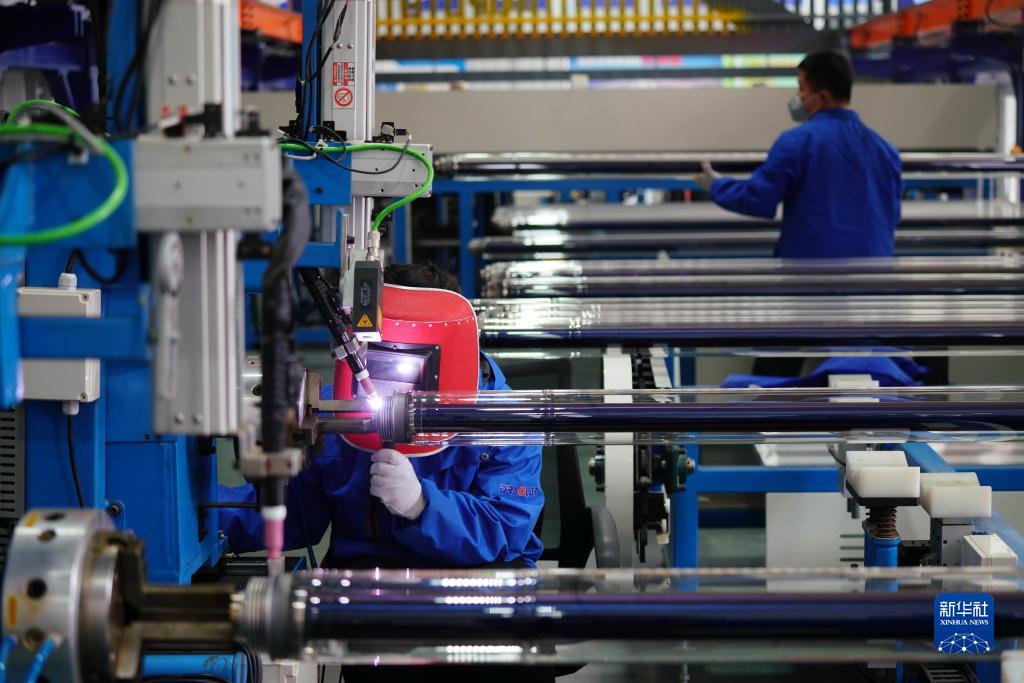 3月3日,河北省威縣一家新能源科技企業(yè)的員工在中高溫集熱管生產(chǎn)線(xiàn)上作業(yè)。