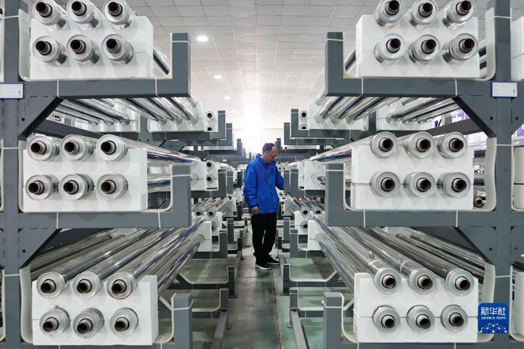3月3日,河北省威縣一家新能源科技企業(yè)的員工在檢查中高溫集熱管產(chǎn)品質(zhì)量。