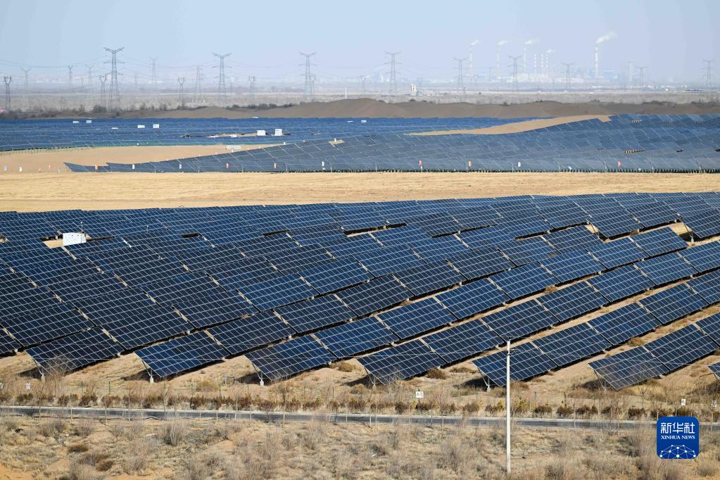 3月3日在內蒙古鄂爾多斯市達拉特旗拍攝的光伏發(fā)電基地。
