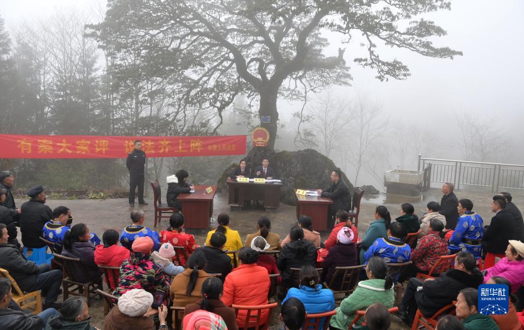 2月28日,法庭工作人員在鶴峰縣中營(yíng)鎮三家臺村開(kāi)展模擬庭審。近年來(lái),湖北省鶴峰縣人民法院積極推行巡回送法進(jìn)鄉村活動(dòng),通過(guò)現場(chǎng)宣講、模擬庭審、法律咨詢(xún)等方式,普及法律知識,化解基層糾紛矛盾,助力鄉村振興。