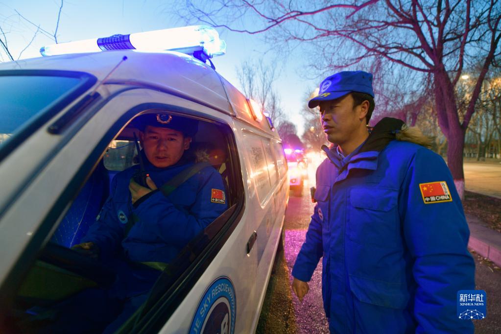 3月4日,劉富強(右)向嘉峪關(guān)藍天救援隊成員叮囑搜救走失人員注意事項。