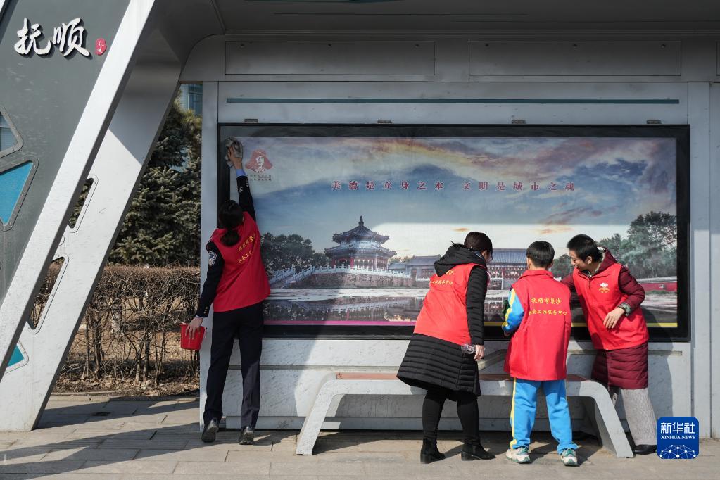 3月4日,“百姓雷鋒”團隊撫順市聚沙社會(huì )工作服務(wù)中心的志愿者在清潔公交車(chē)站。