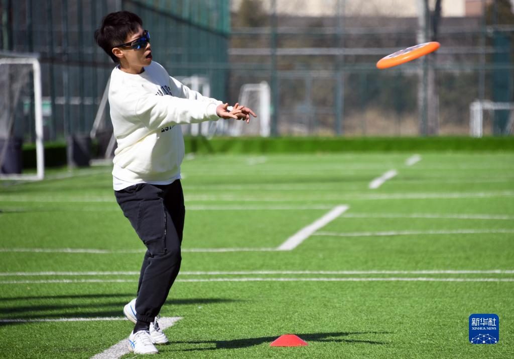3月1日,在北京市朝陽(yáng)區的東楓國際體育園,飛盤(pán)愛(ài)好者進(jìn)行傳接盤(pán)練習。