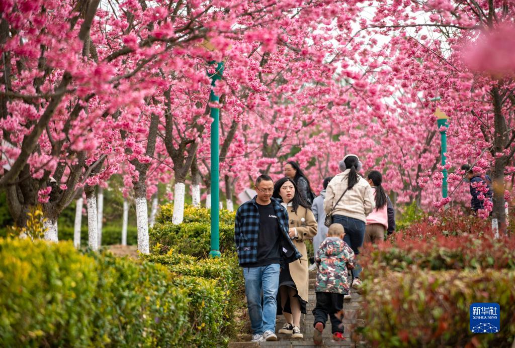近日,云南省曲靖市馬龍區沈家山櫻花谷的400余畝櫻花陸續綻放,吸引游客前來(lái)觀(guān)光游覽。