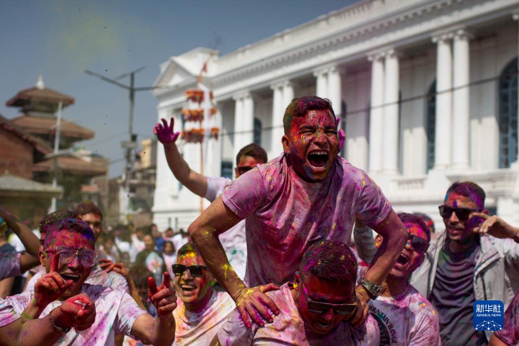 3月6日,人們在尼泊爾加德滿(mǎn)都參加灑紅節慶?;顒?dòng)。