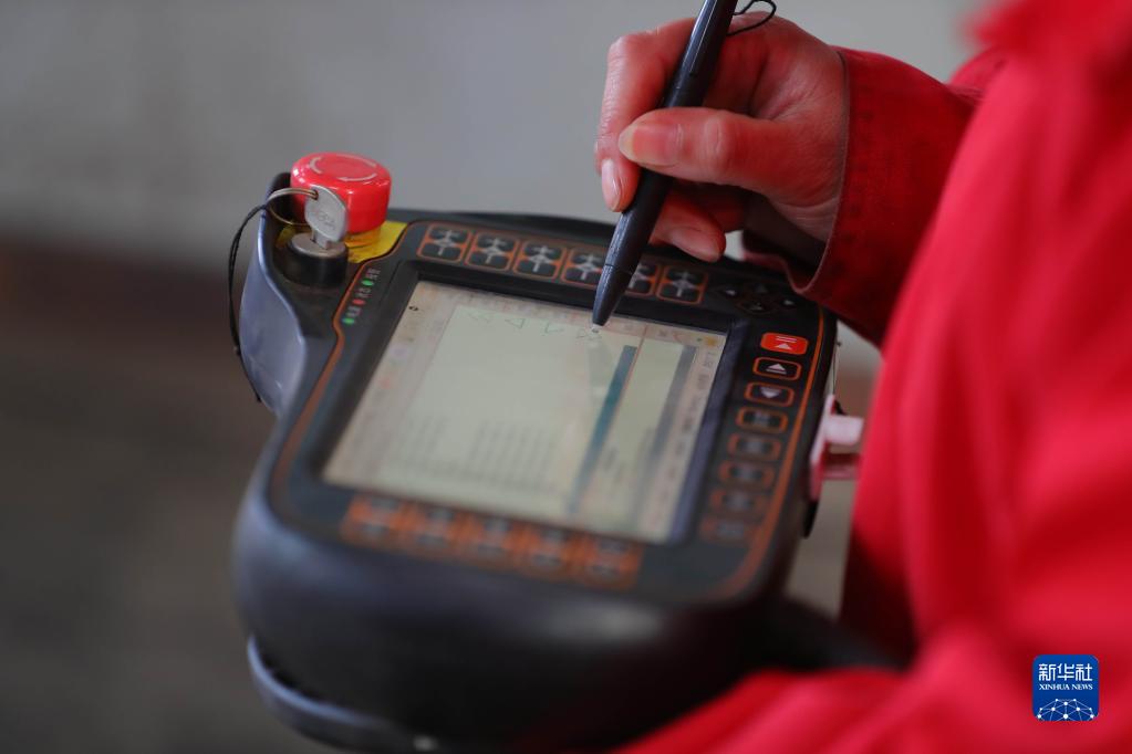 2月27日,楊景愛(ài)操作焊接機器人進(jìn)行作業(yè)。