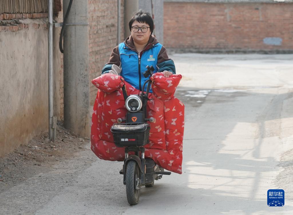 3月7日,在北京市峪口鎮西樊各莊村,王巖峰騎電動(dòng)車(chē)去工作。