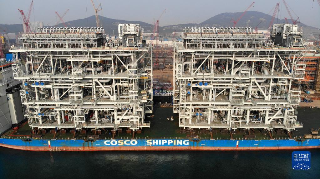 當日,由中國海洋石油工程股份有限公司承建的又一超大型國際能源裝備——加拿大LNG(液化天然氣)項目的最后兩個(gè)核心模塊在青島場(chǎng)地完工裝船,至此,該項目中由我國承建的模塊全部順利交付。