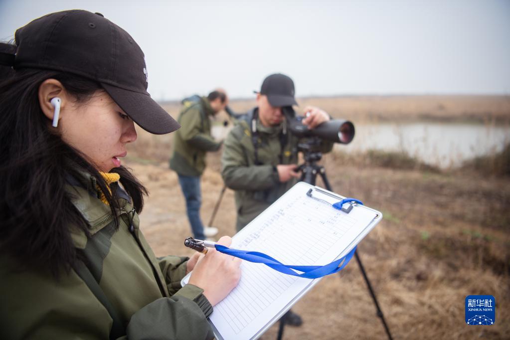 譚文卓在記錄鳥(niǎo)類(lèi)監測數據(2月16日攝)。