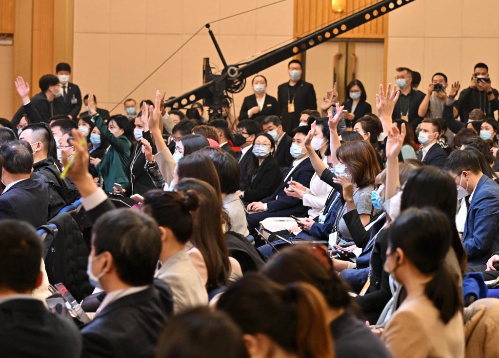 3月7日,十四屆全國人大一次會(huì )議在梅地亞中心舉行記者會(huì ),外交部長(cháng)秦剛就中國外交政策和對外關(guān)系回答中外記者提問(wèn)。這是記者在現場(chǎng)舉手提問(wèn)。