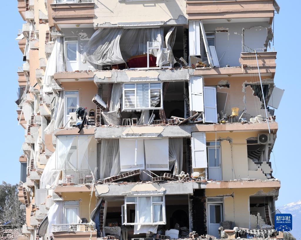 這是3月7日在土耳其哈塔伊拍攝的被地震損毀的建筑。
