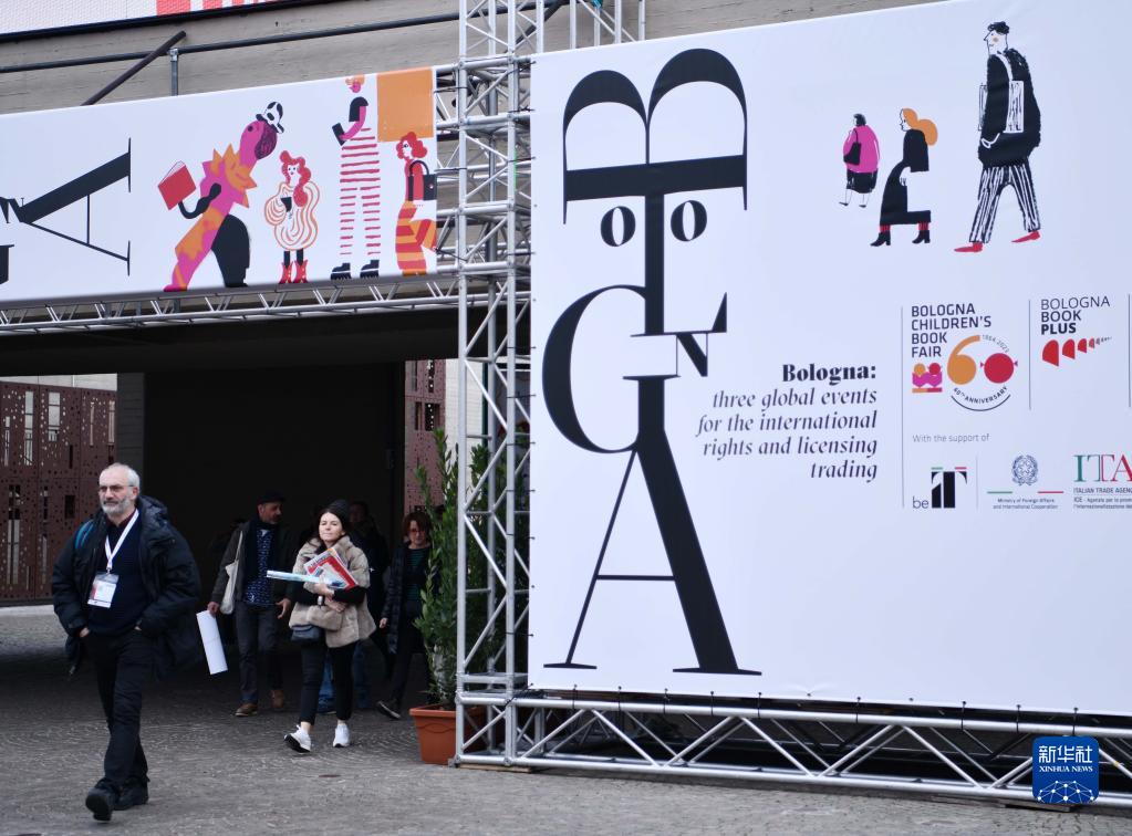 3月7日,人們走出意大利博洛尼亞國際兒童書(shū)展大門(mén)。