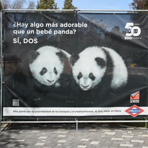 這是3月7日在西班牙馬德里動(dòng)物園拍攝的大熊貓雙胞胎海報,上面寫(xiě)著(zhù)“有什么比一只大熊貓寶寶更可愛(ài)的嗎?有,兩只?!?/p>