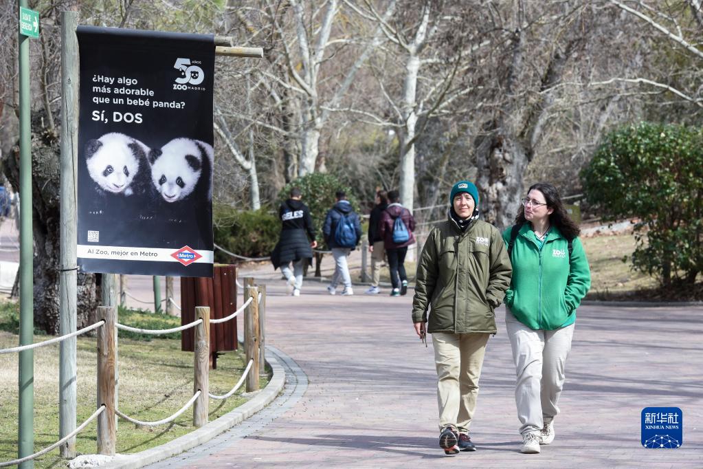 3月7日,人們經(jīng)過(guò)西班牙馬德里動(dòng)物園內的大熊貓雙胞胎海報。