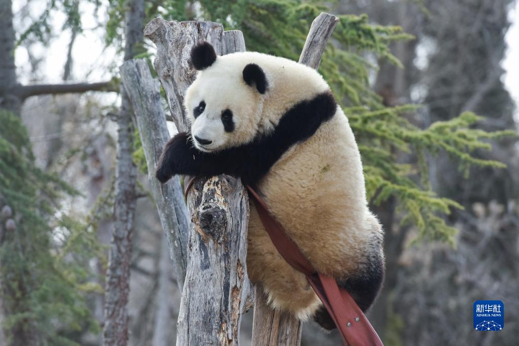 3月7日,大熊貓友友在西班牙馬德里動(dòng)物園內玩耍。