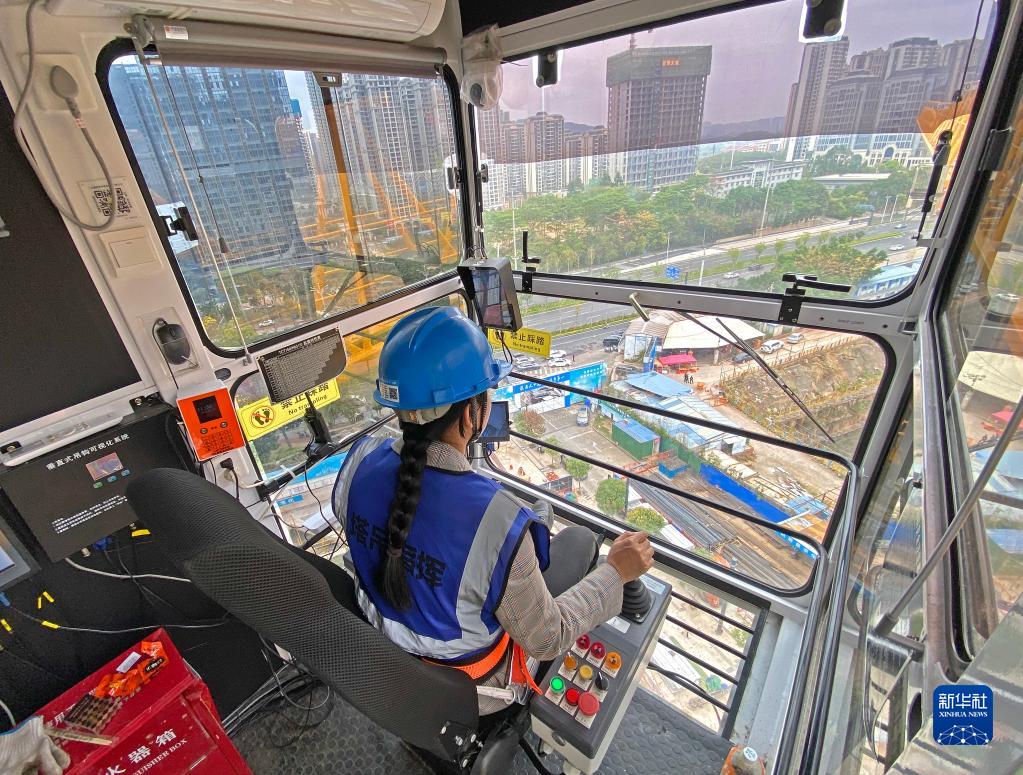 3月7日,在廣西南寧市良慶區五象大道中建三局一公司南寧中銀金融中心項目建設工地,覃桂英在開(kāi)塔吊。