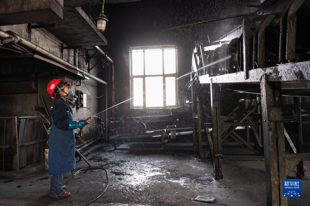 3月7日,在黑龍江省七臺河市,龍煤集團七臺河礦業(yè)公司新鐵煤礦篩選廠(chǎng)工人王艷杰在生產(chǎn)廠(chǎng)房?jì)茸鳂I(yè)。