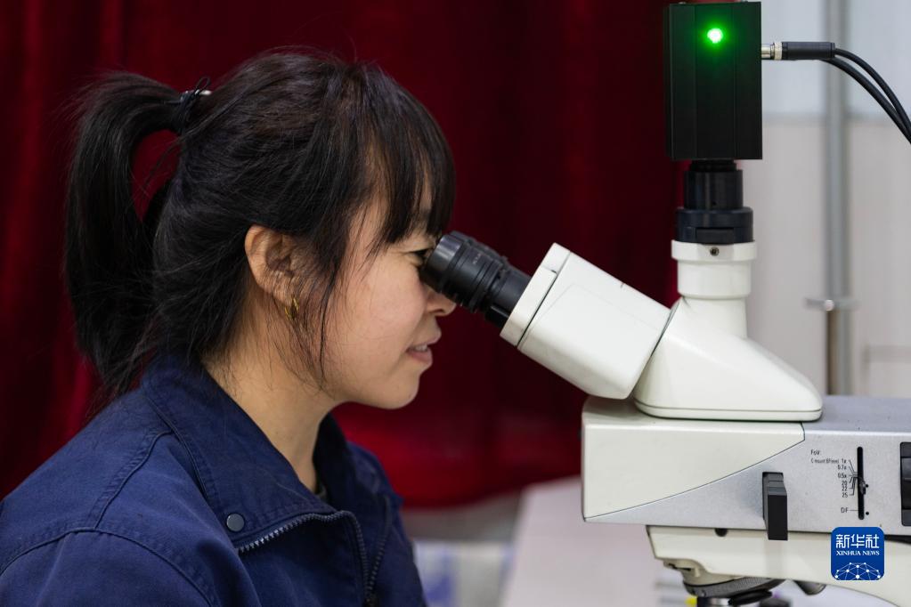 3月7日,在黑龍江省七臺河市,寶泰隆新材料股份有限公司焦化廠(chǎng)工人邱玉敏在化驗室工作。