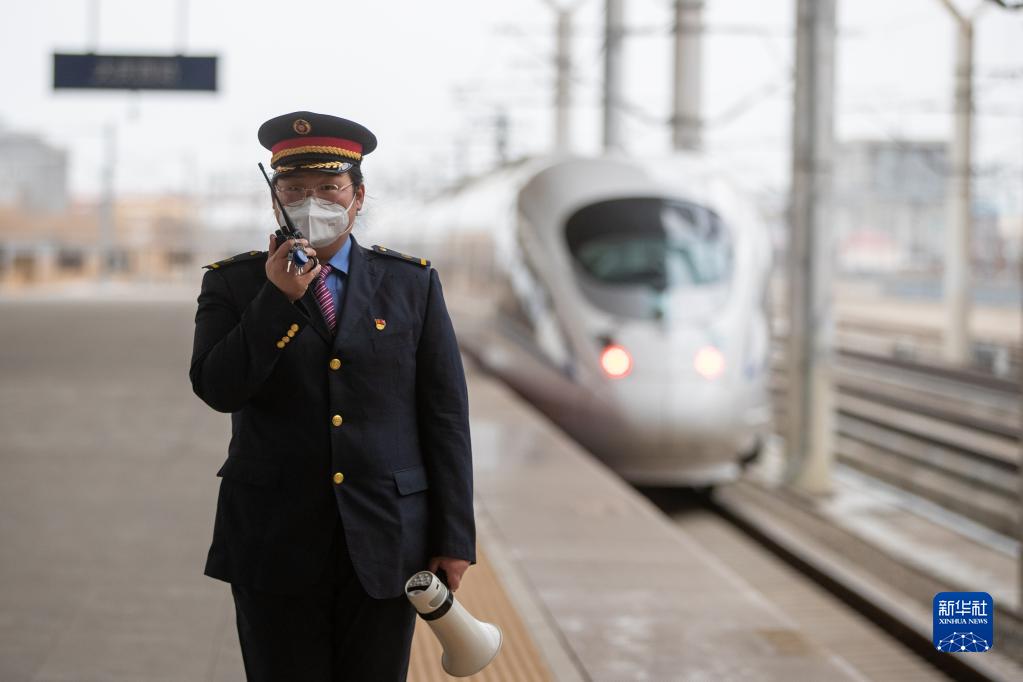 3月7日,大慶車(chē)務(wù)段大慶西站客運車(chē)間客運值班員劉洋在工作中。