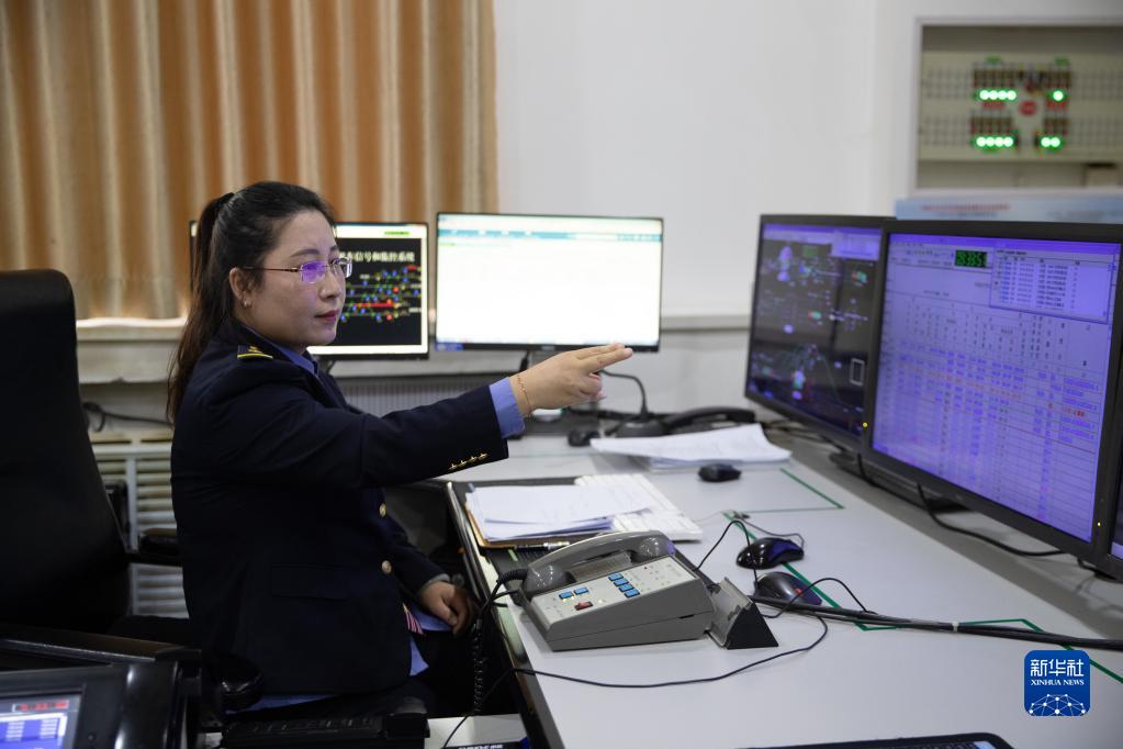 3月7日,在大慶車(chē)務(wù)段大慶西站行車(chē)室,值班員張俊在指揮車(chē)輛進(jìn)站。
