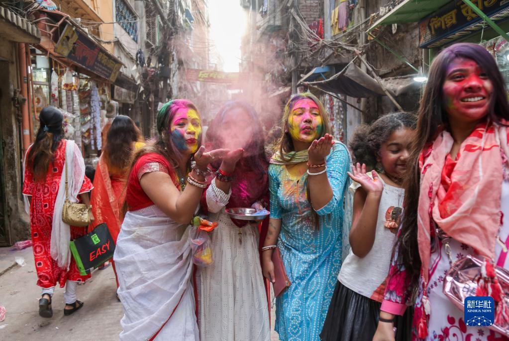 灑紅節也叫胡里節,人們在節日期間互相涂抹顏料,迎接春天的到來(lái)。