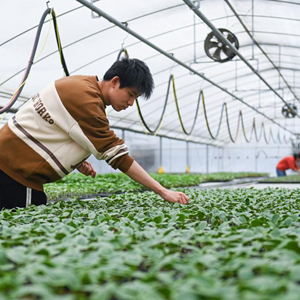 3月8日,工作人員在杭州市臨平區的杭州康成農業(yè)科技有限公司的溫室內嫁接菜苗。