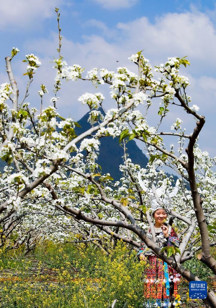3月9日,一名游客在梨樹(shù)林中賞花。