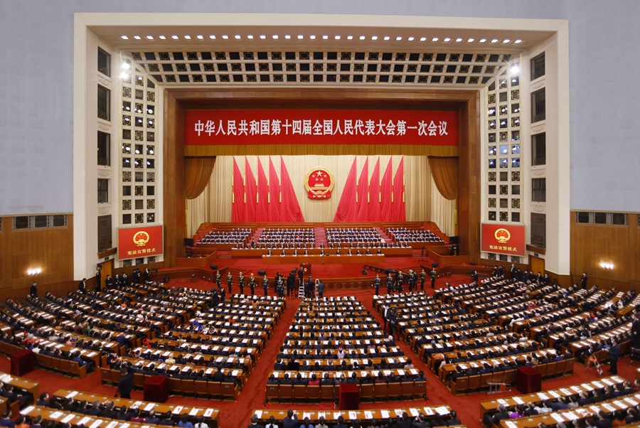 3月10日,中華人民共和國第十四屆全國人民代表大會(huì )第一次會(huì )議憲法宣誓儀式在北京人民大會(huì )堂舉行。