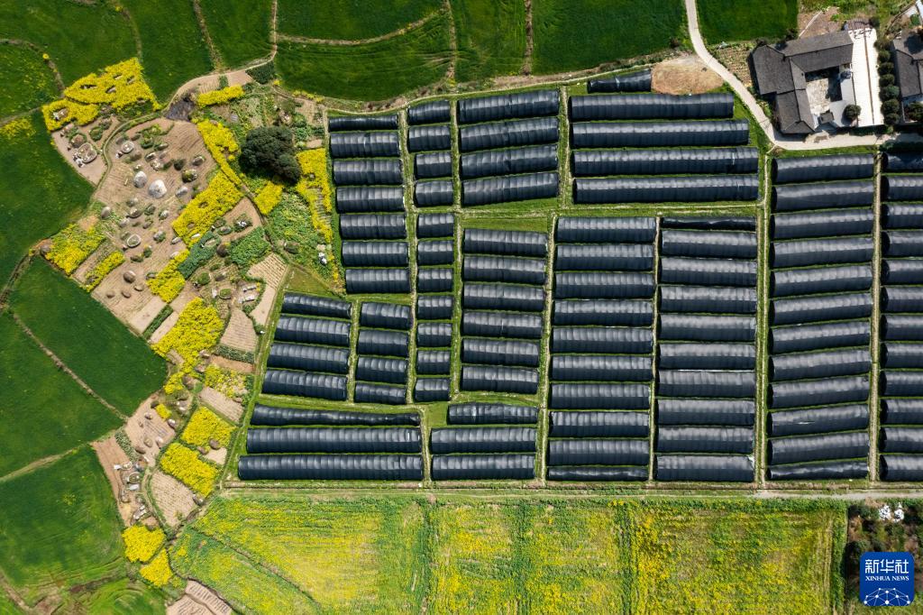這是在四川省成都市大邑縣新場(chǎng)古鎮燈籠社區拍攝的羊肚菌種植大棚(3月8日攝,無(wú)人機照片)。