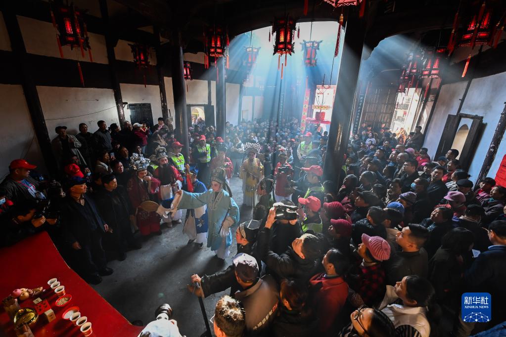 3月10日,在浙江省杭州市淳安縣屏門(mén)鄉屏前村的老祠堂內,人們在觀(guān)看表演。