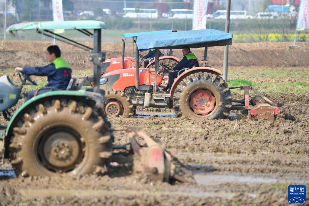 當日,在湖南省湘潭市湘鄉市舉行的湖南省供銷(xiāo)合作社農業(yè)社會(huì )化服務(wù)大聯(lián)盟成立儀式現場(chǎng),種糧能手在200畝高標準農田里操作農機設備進(jìn)行“比武”,通過(guò)拖拉機犁田、旋耕機翻耕、植保無(wú)人機飛防等農機技能比賽提升農業(yè)服務(wù)水平,助力春耕備耕。