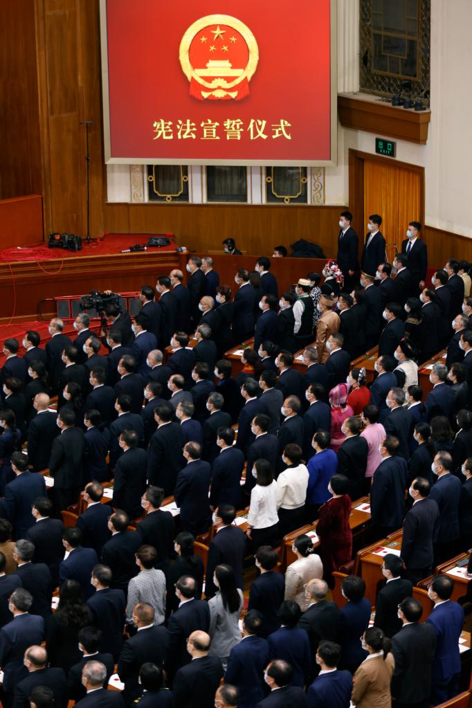 3月10日,十四屆全國人大一次會(huì )議在北京人民大會(huì )堂舉行第三次全體會(huì )議。全體會(huì )議各項議程進(jìn)行完畢后,舉行中華人民共和國第十四屆全國人民代表大會(huì )第一次會(huì )議憲法宣誓儀式。
