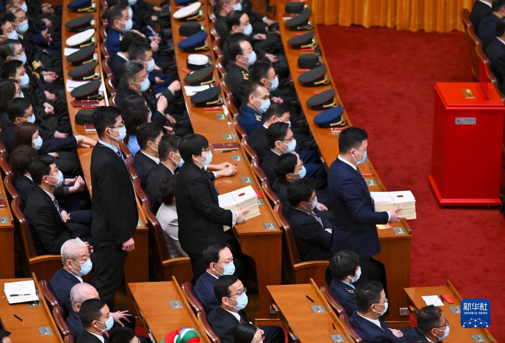 3月11日,十四屆全國人大一次會(huì )議在北京人民大會(huì )堂舉行第四次全體會(huì )議。這是工作人員準備發(fā)放選票。