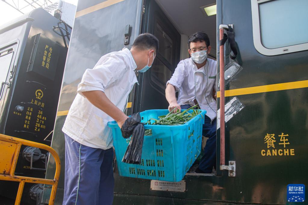 3月10日,杭州客運段的工作人員為Y71次旅游專(zhuān)列餐車(chē)備料。