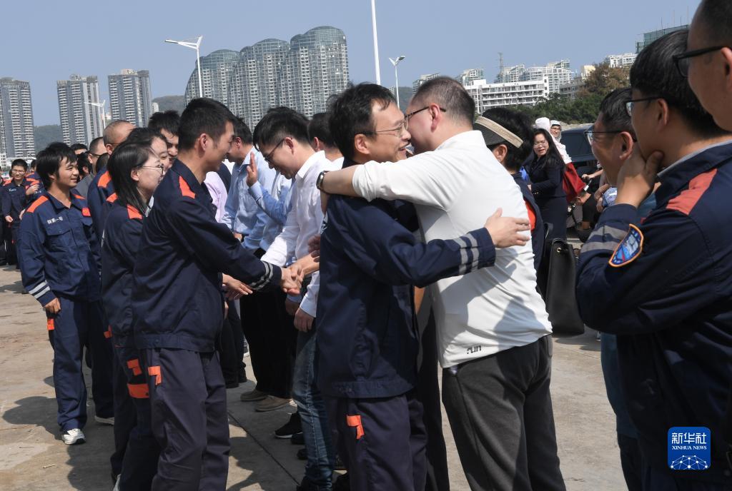 3月11日,“探索一號”科考船攜“奮斗者”號全海深載人潛水器抵達三亞,參與科考任務(wù)的科學(xué)家與前來(lái)歡迎的人們擁抱。