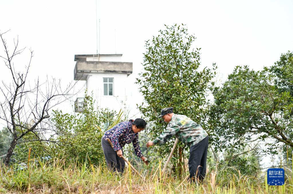 3月9日,黃同維與妻子在火情瞭望塔附近的空地補植樹(shù)苗。