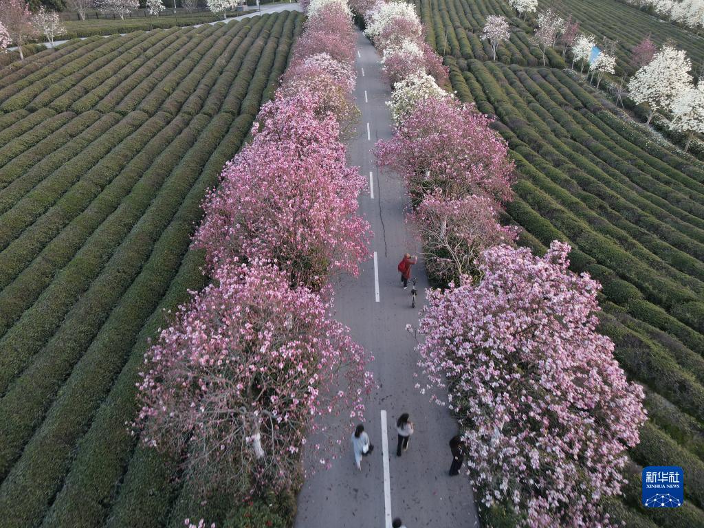 近日,隨著(zhù)氣溫回升,位于江西省南昌市南昌縣鳳凰溝景區的大片玉蘭花、郁金香、櫻花競相綻放,吸引了眾多游客前往踏春游玩。