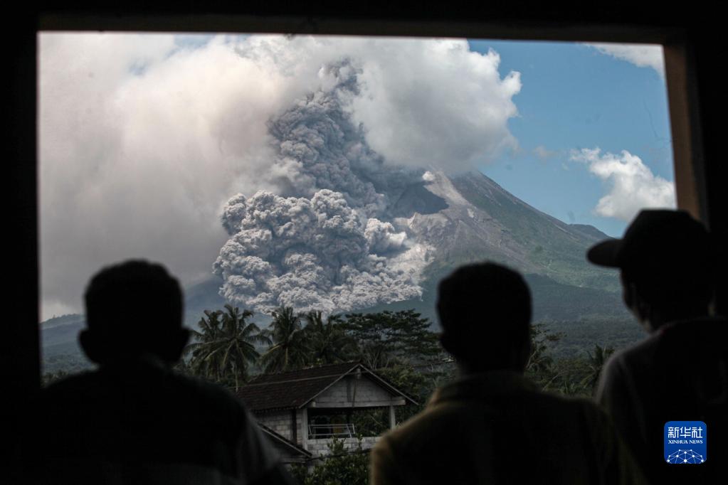 這是3月11日在印度尼西亞馬格朗拍攝的噴發(fā)的默拉皮火山。