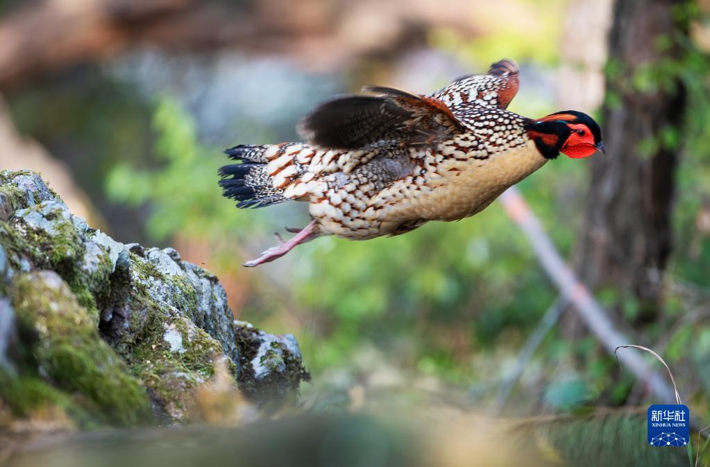 3月11日,在福建省建甌市小橋鎮梨山,一只黃腹角雉從巖石上躍起。