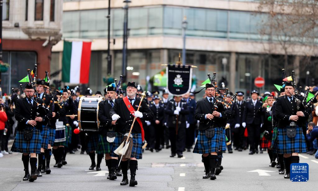 當日,英國倫敦舉行游行活動(dòng)迎接即將到來(lái)的圣帕特里克節。每年3月17日的圣帕特里克節是愛(ài)爾蘭傳統節日,為紀念?lèi)?ài)爾蘭守護神圣帕特里克而設立。