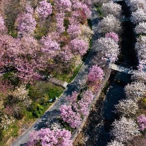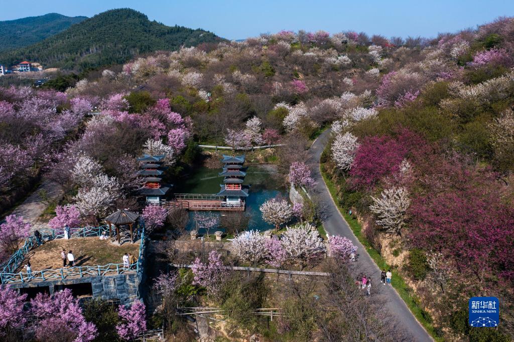 3月13日拍攝的瓶窯鎮塘埠村的杭州櫻花園(無(wú)人機照片)。