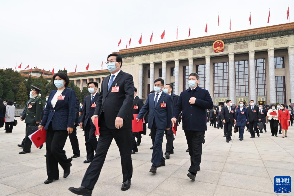 3月13日,第十四屆全國人民代表大會(huì )第一次會(huì )議在北京人民大會(huì )堂舉行閉幕會(huì )。這是閉幕會(huì )后,代表走出人民大會(huì )堂。